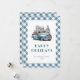 Cartões de Natal personalizados com xadrez azul vintage, apresentando um caminhão azul. Personalize facilmente esses cartões de Natal de caminhão azul aquarela com neve com o nome da sua família.