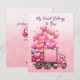 Cartão De Festividades Caminhão de Balões Corações Rosa em Rosa