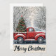 Cartão De Festividades Caminhão Vermelho Antigo e Alameda da Árvore Nevad