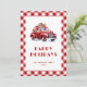 Cartão De Festividades Caminhão Vermelho Clássico Xadrez Gingham Neve