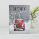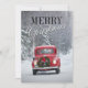 Cartão De Festividades Caminhonete Vermelha Dirigindo na Neve