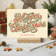 Playful and nostalgic, this candy-stripe “Merry Christmas” script card features 1960s swirly lettering in red, white, and green. A festive typography-only design full of retro Christmas charm.