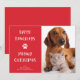 Este cartão de Natal adorável para amantes de gatos e cães diz "Feliz Howlidays" e "Meowy Natal" em tipografia branca moderna e caprichosa, com uma pegada de pata fofa e espaço para a sua foto favorita do seu cachorro e gatinho!