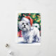 Cartão De Festividades Cão maltês branco com chapéu de Papai Noel