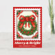 Celebre a estação com este cartão de saudação de Carimbo de Postamp de Letra Retro e Feliz. Uma coroa de Natal clássica, enquadrada no estilo retro postage, faz com que este cartão seja festivo, nostálgico e perfeito para os cartões de natal.