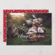 Cartões de Natal vermelhos personalizados com uma cobertura de neve e um belo título de roteiro festivo na frente e estrelas em um fundo vermelho plano no fundo. O plano de fundo pode ser alterado para qualquer cor. Personalize facilmente estes cartões vermelhos de Natal com a sua imagem e um nome de família.