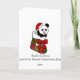 Cartoon de Panda Feliz e Bonita criado por Naomi Ochiai, do Japão. Panda adorável e maliciosa está sorrindo nos Papais noeis empilhando com um Chapéu Santa. Cartão de Natal colorido e engraçado para fãs de Panda! Você pode personalizar o texto!