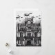Uma velha mansão assombrada com morcegos sobrevoando. Adicione seu próprio texto para personalização.