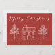 Casa e Luzes de Natal Rústicas - Uma casa de Natal delicada com um pinheiro de ambos os lados e uma cama de neve. O cartão de Natal é personalizado com o seu nome familiar. A parte de trás do cartão apresenta a sua foto de Natal favorita com uma estrutura de chaveiro. Para personalizar ainda mais o cartão, escolha "personalizar". O cartão de Natal faz parte de uma coleção.