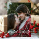 Celebre a primeira temporada de festas como recém-casados com este encantador cartão de foto "Casados e Alegremente". Perfeito para casais, este design apresenta um script festivo e manuscrito, além de espaço para personalizar com seus nomes e uma foto querida. Espalhe amor e alegria natalina ao compartilhar sua felicidade com familiares e amigos durante a época mais maravilhosa do ano.