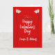 Cartão de Feriado de Nomes Personalizados Mostre seu amor com estas duas flores e corações como um em um fundo vermelho. Você pode personalizar com nomes de casais na tipografia moderna. Uma mensagem de Feliz dia de os namorados está no dentro.