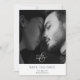 Minimalista e chique. Este adorável casamento, salvar o cartão de data, apresenta uma foto de casal (idealmente preto e branco) com um conjunto contemporâneo de fontes em preto. Um retângulo branco na parte inferior fica na parte superior da foto. A parte traseira do cartão inclui texto e endereço de site opcionais. Deixe esta caixa de texto em branco se nenhum texto for preferido. A coleção de casamento de cheios pode ser vista aqui: https://www.zazzle.com/collections/modern_chic_script_wedding_collection-119480419775094242