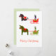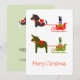 Cartão De Festividades Cavalo Mula Gato Passeio de trenó em verde e verme