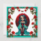 Cartão De Festividades Caveiras de Açúcar com Rosas Azuis e Vermelhas