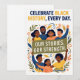 This colorful illustration honors Black history and culture through a message of unity, pride, and shared strength. Smiling figures of different ages stand together holding a banner that reads “Our Stories, Our Strength,” surrounded by expressive decorative elements that suggest music, creativity, and heritage. The headline “Celebrate Black History, Every Day” reinforces the idea that Black history is living, ongoing, and worth recognizing beyond a single month. Rendered in a warm, modern illustration style, this artwork is well suited for educational spaces, homes, offices, gifts, and community settings that value diversity, inclusion, and cultural appreciation.