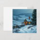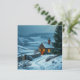 Cena de colinas ondulantes no inverno tranquilo com uma casa de pedra decorada com Coroa de Natal