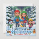 Celebre a temporada com charme e alegria usando este cartão de Natal personalizado de família em desenho animado, apresentando um cenário festivo de neve, roupas de inverno aconchegantes e o nome da sua família. Este cartão de cumprimentos quadrado é perfeito para espalhar alegria para amigos e entes queridos com um estilo divertido e animado que captura a magia do Natal. Ótimo para famílias que desejam uma maneira moderna e alegre de enviar seus votos de Natal com um toque criativo e memorável.