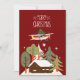 Soar into the season with this whimsical vintage style Aviation themed Christmas card! Design features a classic Cessna Skyhawk aircraft flying through a star-filled night sky, proudly hauling a fully decorated Christmas tree strapped atop its wings. Below, a cabin house surrounded by pine trees and white snow, while the festive greeting “Merry Christmas” shines in retro aviation lettering.