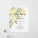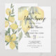 Contra um pano de fundo suave e elegante de amarelo e branco pastel, este convite para noivas apresenta delicadas ilustrações de limão espalhadas por toda parte, evocando a mais suave e doce do amor. Os limões, com seus tons amarelos mudos, são enfeitados com um verde-luxuoso, criando uma vibração moderna e fresca.