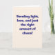 Celebre o Festival das Luzes com um pouco de talento extra. Este humorístico cartão Chanucá diz "Enviando luz, amor, e a quantidade certa de caos!" em negrito tipo azul. Uma saudação divertida e moderna que é excelente para amigos, família e família escolhida. A mensagem dentro é totalmente personalizável.