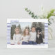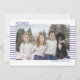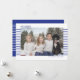 Na moda e cartões com fotos bonitos são perfeitos para todos os seus amigos e família neste feriado. Personalize o texto "feliz hanukkah" com sua saudação e mude o nome da família e o ano e troque a foto por uma foto de seus filhos, animais de estimação ou de toda a família. O design apresenta um texto simples com faixas azuis na frente atrás da imagem e o verso é o oposto com faixas brancas sobre um fundo azul.