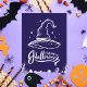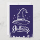 Este impressionante cartão de Natal de Halloween apresenta uma ilustração branca e ousada de um chapéu clássico de bruxa contra um fundo roxo profundo. O design é completado com uma cena assustadora de cemitério na parte inferior, adicionando um toque sinistro e elegante. A mensagem "Feliz Halloween" é elegantemente escrita, tornando este cartão de Natal perfeito para enviar saudações de Halloween ou para uso como peça decorativa durante a temporada assustadora. O design minimalista e impactante é ideal para aqueles que apreciam uma estética clássica de Halloween.