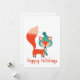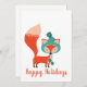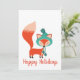 O design festivo apresenta uma raposa moderna com um chapéu de inverno fofo e o texto personalizável "Felizes Festas"