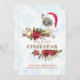 Design exclusivo de cartão de Natal com um gatinho Santa, buquê de poinsettia, tipografia "Meu primeiro NATAL" com brilho falso magnífico e flocos de neve em fundo branco. Use a ferramenta Personalizar para adicionar suas informações, alterar a cor do fundo, texto e fontes. Veja também minha Coleção de Férias Divertidas.