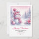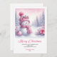 Cartão De Festividades Charming Pink Snowman Kids Editable Christmas Card