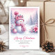 Celebrate the season with this cute watercolor pink coquette snowman kids Christmas card, set in a magical snowy forest. Editable text lets you personalize instantly, and the digital download provides an easy, fast, and festive holiday greeting.