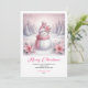 Celebrate the season with this cute watercolor pink coquette snowman kids Christmas card, set in a magical snowy forest. Editable text lets you personalize instantly, and the digital download provides an easy, fast, and festive holiday greeting.