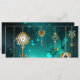 Chaves Douradas e antigas com engrenagens e marcadores penduram em correntes douradas sobre fundo verde luminoso.