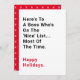 Celebrar o encanto do seu chefe com o nosso "Aqui está para um chefe que está na lista de "Nice"... Na Maioria Das Vezes. Feliz feriado!" cartão. Traga um traço de humor para a estação festiva e compartilhe uma risada com seu incrível líder. É a combinação perfeita de inteligência e calor para uma vibração alegre no escritório de férias.