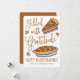 Adicione uma saudação de Ação de Graças à sua família. O design é composto por ilustrações de torta de abóbora.