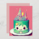 Cartão De Festividades Chibi, bolo de aniversário bonito, castelo verde