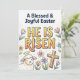 This cheerful Easter illustration celebrates the joy and meaning of the Resurrection. The message “A Blessed & Joyful Easter - He Is Risen” is presented in bold, friendly lettering, surrounded by soft spring florals, a sweet lamb with a halo, and a radiant cross. The pastel color palette and hand-drawn style evoke warmth, renewal, and spiritual reflection. Ideal for Easter cards, wall art, gifts, and seasonal decor, this artwork is well suited for homes, churches, and anyone wishing to share a message of faith, hope, and joy during the Easter season.