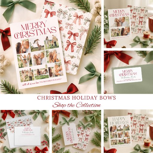 Share holiday joy and cherished memories with this elegant Merry Christmas photo card. Designed in a modern grid layout, this multi-photo Christmas card features a stylish collage of your favorite family photos with a bold, classic “Merry Christmas” greeting in festive red typography.