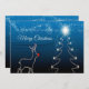 Christmas Greeting Reindeer Tree Blue Sky Shiny Holiday Card. Unique, beautiful, stylish design. Easy to be personalized. Font style, size and colors can be changed. Matching items are available.