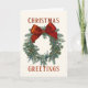 Cartão De Festividades Christmas Greetings Green Wreath Red Bow