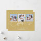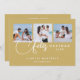 Christmas Spanish Cute 3 Multi Photo Collage in Faux Gold Holiday Card with Envelope.