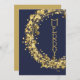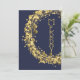 Círculos e estrelas douradas e pontos sobre um fundo azul marinho rodeados da palavra "FELIZ" ou da sua mensagem na frente e dos seus nomes e saudações no verso. QUALQUER fonte e cor da fonte. **ADICIONE uma foto no verso com sua saudação personalizada. Selecione Matte para o papel mais pesado e alta definição para melhor qualidade de impressão.