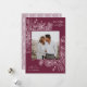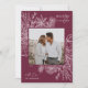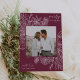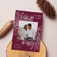 Um cartão de férias moderno e elegante que enquadra sua foto quadrada em um quadro perfeitamente detalhado com fatias de fruta cítrica, anis estrelado e pinheiros em um rico fundo de ameixa. "Feliz Natal" aparece no canto superior direito, com o nome da sua família na parte inferior. O ano é escondido elegantemente no canto inferior esquerdo da finamente detalhada estrutura botânica branca. Uma natureza delicada e refinada inspirou a escolha para os seus cartões de Natal de 2021.
