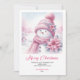 Celebrate the season with this cute watercolor pink coquette snowman kids Christmas card, set in a magical snowy forest. Editable text lets you personalize instantly, and the digital download provides an easy, fast, and festive holiday greeting.