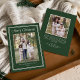 Compartilhe cartões de natal incríveis com este cartão de feriado com uma rica floresta verde e um quadro tradicional de borda dupla creme. O "Feliz Natal" aparece em cartazes coordenadores de creme sobre a foto da sua família, com o nome da sua família e o ano impresso abaixo. A elegante paleta verde-florestal e creme cria um design eterno e festivo, perfeito para enviar alegria de Natal a amigos e entes queridos. O verso inclui uma fotografia quadrada com espaço para a sua mensagem personalizada, preenchendo este cartão de feriado clássico.
