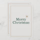 A clean and minimalist Merry Christmas holiday card with a discreet gold and white border, a gold star sits above the right of the text, and customizable text and message in deep forest green color. The overall design emphasizes simplicity and refinement, creating a premium feel.