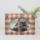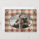 Este cartão de Natal com várias fotos apresenta uma textura entrelaçada em xadrez/tartan em tons de vermelho, verde e creme, suaves, mas festivos, para uma estética de cobertor aconchegante. Este design evoca todos os sentimentos de um ambiente aconchegante junto ao fogo numa cabana de madeira, enquanto você se abriga da neve com um chocolate quente na mão. Perfeito para os amantes do ar livre e da floresta. A frente do cartão mostra sua foto favorita, e no verso há espaço para fotos adicionais e sua mensagem pessoal para amigos e familiares.