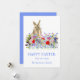 Cartão De Festividades Coelhinho-Cinto-felz pascoa e flores selvagens