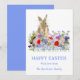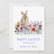 Cartão de saudação de coelho de páscoa e felz pascoa de flor selvagem com azul de pantanal e tipografia. Belos primavera de boho, incluindo flores de cornflores, margaridas e flores de prados de jardim. Pintura moderna à mão em tons azuis, vermelhos, cor-de-rosa, roxos, verdes e lavandas. Fácil de personalizar o moderno script de tipografia de escrita manual para que você possa adicionar seu nome de família e saudações. Arte original da artista Catherine Sweetman