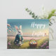 Cartão De Festividades Coelhinho de Páscoa em jaqueta azul