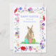 Felz pascoa de aquarela com um belo coelho de Páscoa e ovos Cartão de saudação de felz pascoa azul de córnflor floral. Belo vassoura de flores silvestres incluindo flores de milho e flores de prados de jardim com fácil personalização de um roteiro de tipografia moderno para que você possa adicionar seu nome de família e saudações. Arte original da artista Catherine Sweetman